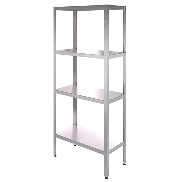 Стеллаж со сплошными полками СК 800/400 сборно-разборная конструкция, каркас выполнен на основе уголка из нержавеющей стали 1,5 мм, прочность полки обеспечивается продольным ребром жесткости, которое крепится ко дну полки и позволяет увеличить нагрузку -Ножки снабжены регуляторами высоты, что позволяет устранять неровности пола