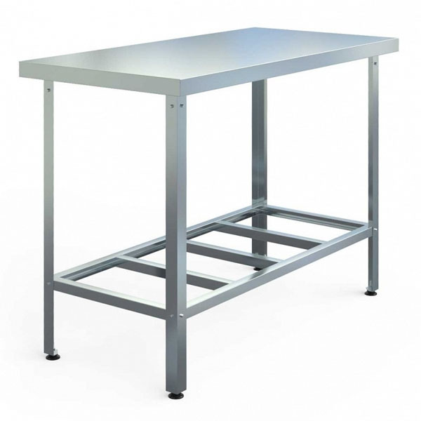 Разборный, без борта, полка - решетка, столешница нерж. сталь AISI 430, ножки оцинкованная сталь