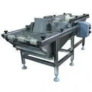 Устройство и принцип работы: Полуфабрикат, погружается с лентой транспортера в льезон и после выхода из него падает на транспортер с сухарями.