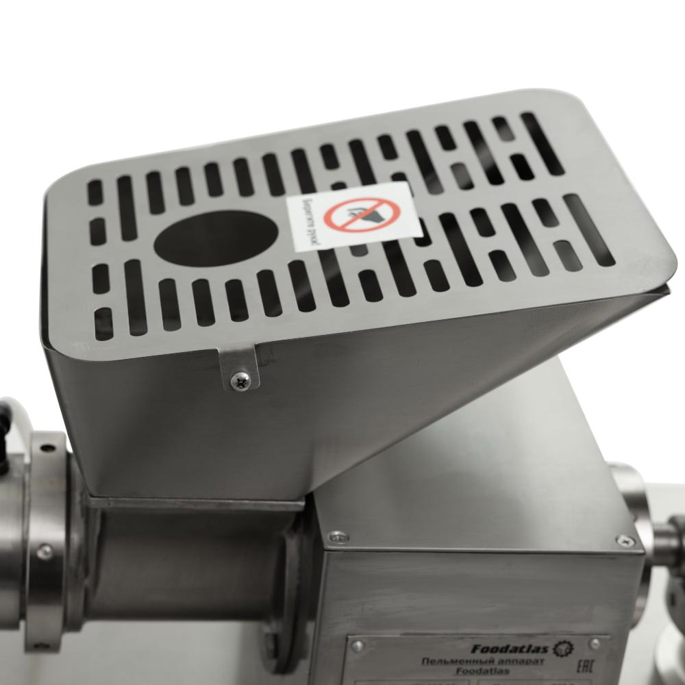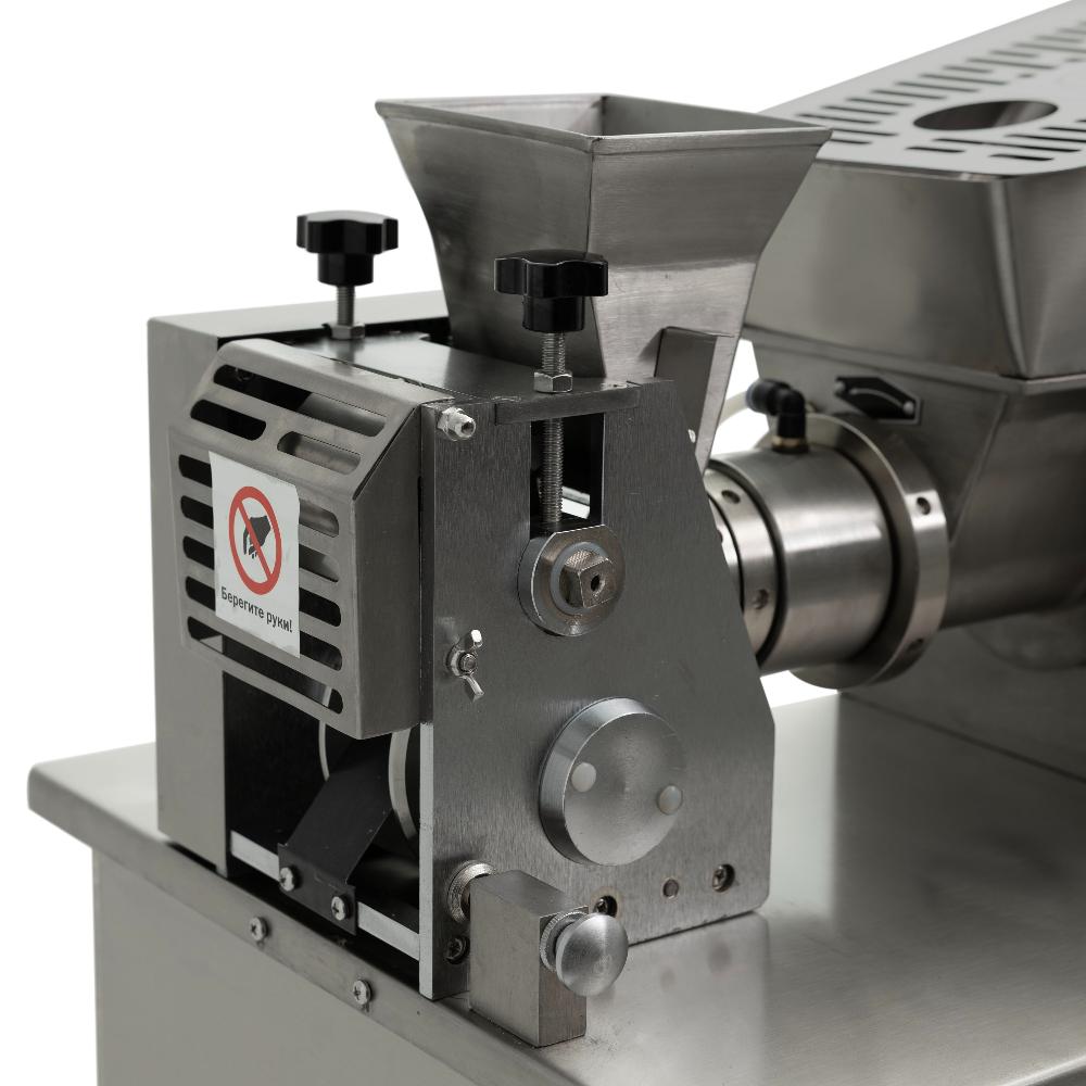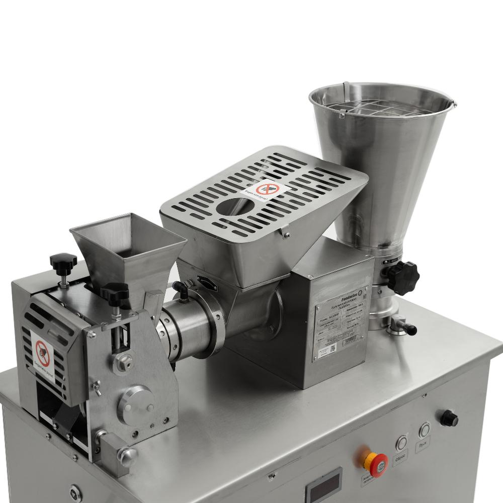 - это профессиональное напольное оборудование для производства широкого ассортимента полуфабрикатов: пельменей, равиоли, вареников, клёцок, мини-пельменей и пирожков. Модель оснащена частотным преобразователем, позволяющим плавно регулировать скорость вращения шнеков теста и начинки, а также формовочной матрицы, что даёт возможность точно настраивать процесс под любой рецепт и тип изделий. Аппарат предназначен для использования на предприятиях общественного питания, в ресторанах, супермаркетах и цехах по производству мясных и мучных полуфабрикатов. Корпус выполнен из нержавеющей стали, полностью герметичен и оснащён съёмными панелями для удобного обслуживания.