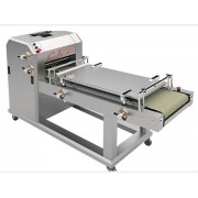 Попадая на движущуюся транспортерную ленту конвейера, предварительно раскатанная тестовая заготовка заворачивается в рулон, и, проходя под закаточной плитой, формуется в заготовку цилиндрической формы заданной длины и диаметра. Процесс происходит без разрывов, напряжения и стресса для теста.