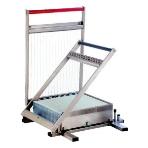 Предназначена для резки мармеладных, суфлейных и бисквитных пластов на сегменты заданных габаритов. Регулировка габаритов заготовки пошаговая, то есть происходит за счёт снятия струн. Таким образом увеличивается шаг.