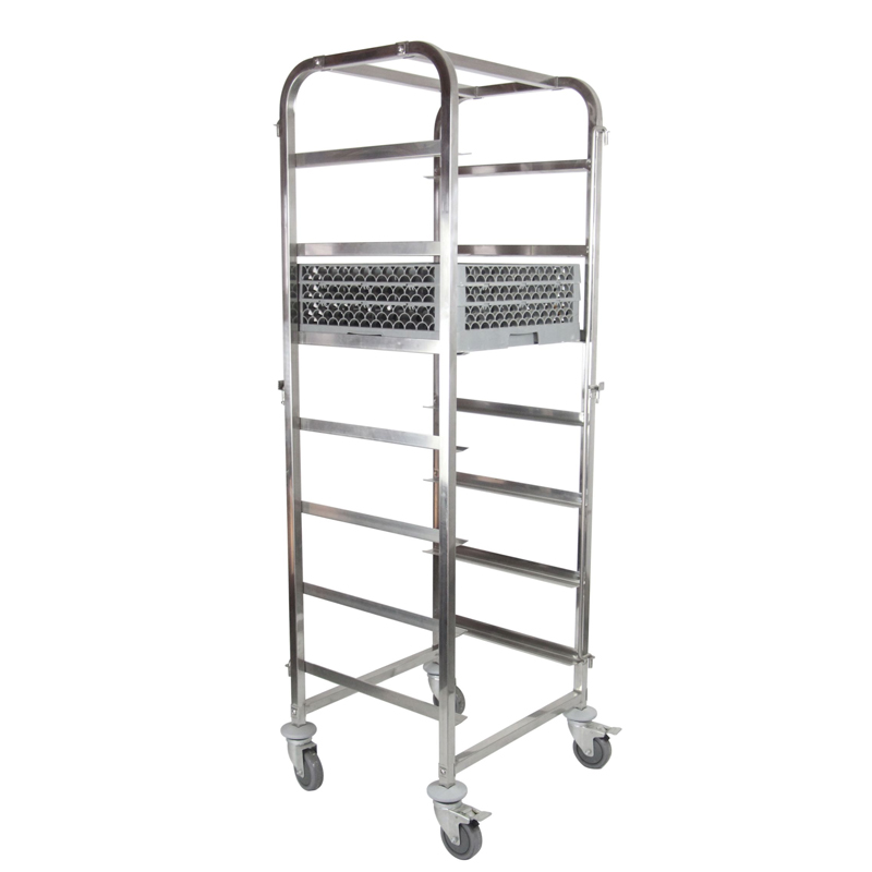 Тележка для хлебных лотков предназначена для транспортировки батонов. Удобная конструкция тележки позволяет избежать выпадения батонов из тележки во время транспортировки и на поворотах. Каркас тележки изготовлен из профильной трубы 25х25 и листового метала толщиной 1,5 мм