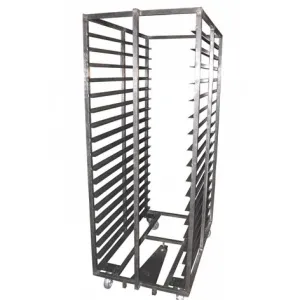 Тара-оборудование хлебная предназначена для хранения изделий и транспортировки в лотках размером 450х740 мм, доставки их специальными автотранспортом и продажи из них хлебобулочных изделий в торговом предприятии. Ходовая часть состоит из 4-х поворотных колёс д.150 мм.