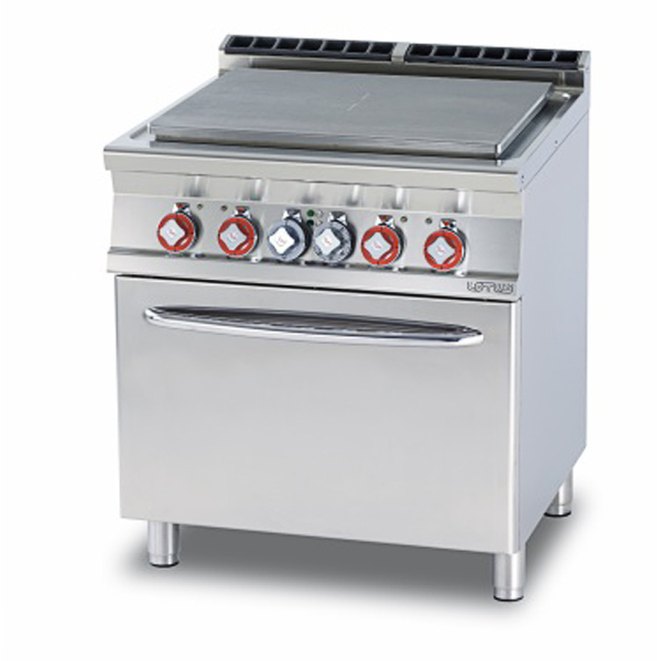 сплошная поверхность это профессиональное кухонное оборудование, предназначенное для приготовления первых, вторых и третьих блюд. Сплошная рабочая поверхность обеспечивает удобное перемещение посуды по всей поверхности плиты. Плита полностью изготовлена из нержавеющей стали AISI 304. В корпус плиты встроен жарочный шкаф для противня размером 2/1GN.